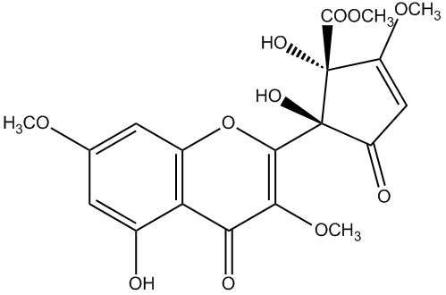 | IUPAC名 | (1R,5S)-rel-(+)-1,5-dihydroxy-5-(5-hydroxy-3,7-dimethoxy-4-oxo-4H-1-benzopyran-2-yl)-2-methoxy-4-oxo-2-Cyclopentene-1-carboxylic acid methyl ester |