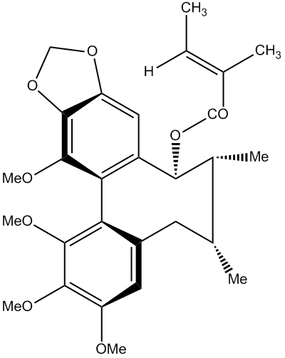 | IUPAC名 | (2E)-(6R,7R,8R,13S)-5,6,7,8-tetrahydro-1,2,3,13-tetramethoxy-6,7-dimethylbenzo[3,4]cycloocta[1,2-f][1,3]benzodioxol-8-yl 2-methyl-2-Butenoic acid ester |