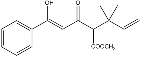 | IUPAC名 | 2-(1,1-dimethyl-2-propenyl)-5-hydroxy-3-oxo-5-phenyl-4-Pentenoic acid methyl ester (9CI) |