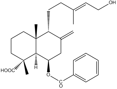 | IUPAC名 | (1R,4aR,5R,8R,8aR)-8-(benzoyloxy)decahydro-5-[(3E)-5-hydroxy-3-methyl-3-penten-1-yl]-1,4a-dimethyl-6-methylene-1-Naphthalenecarboxylic acid |